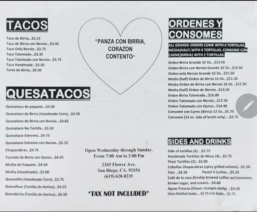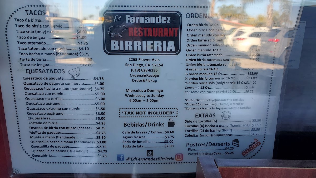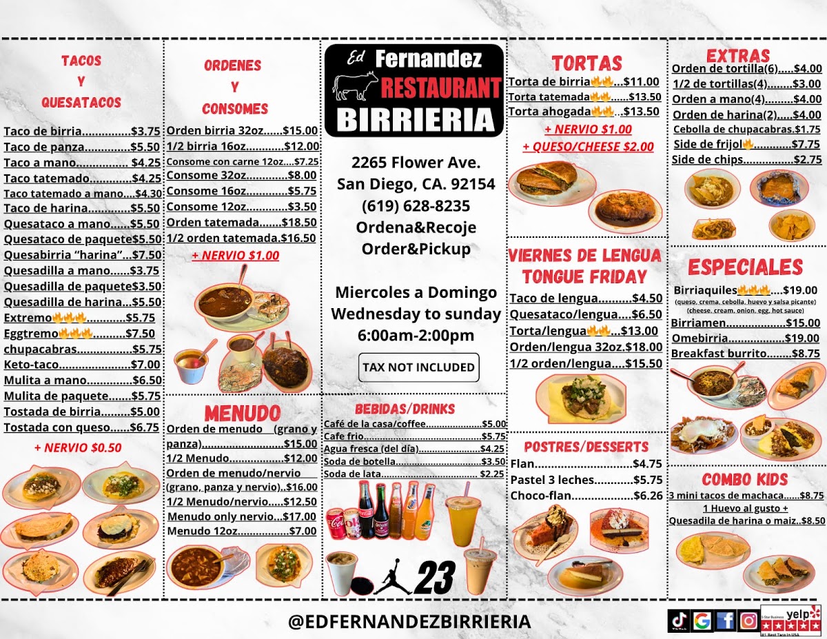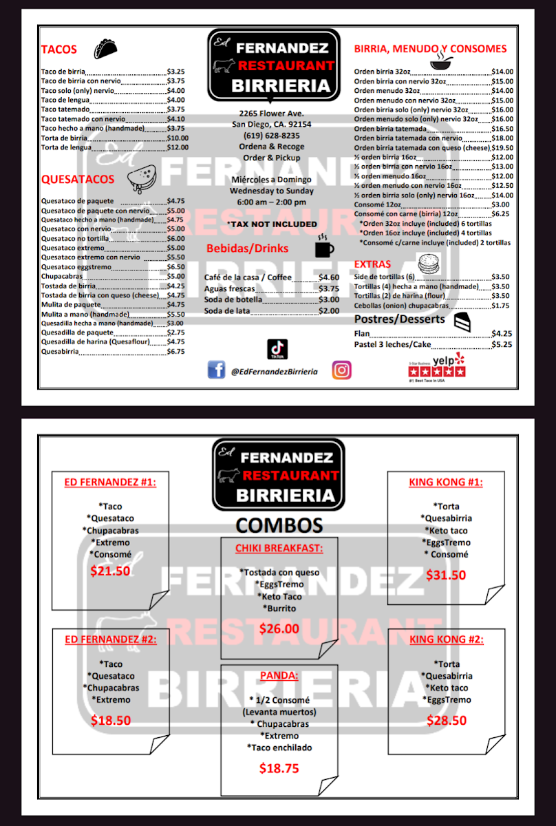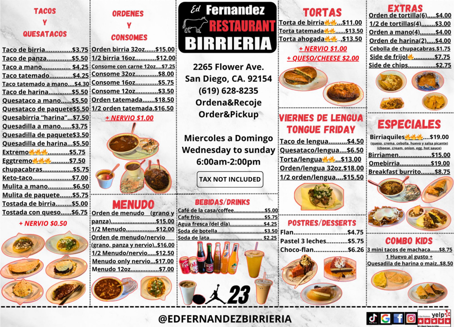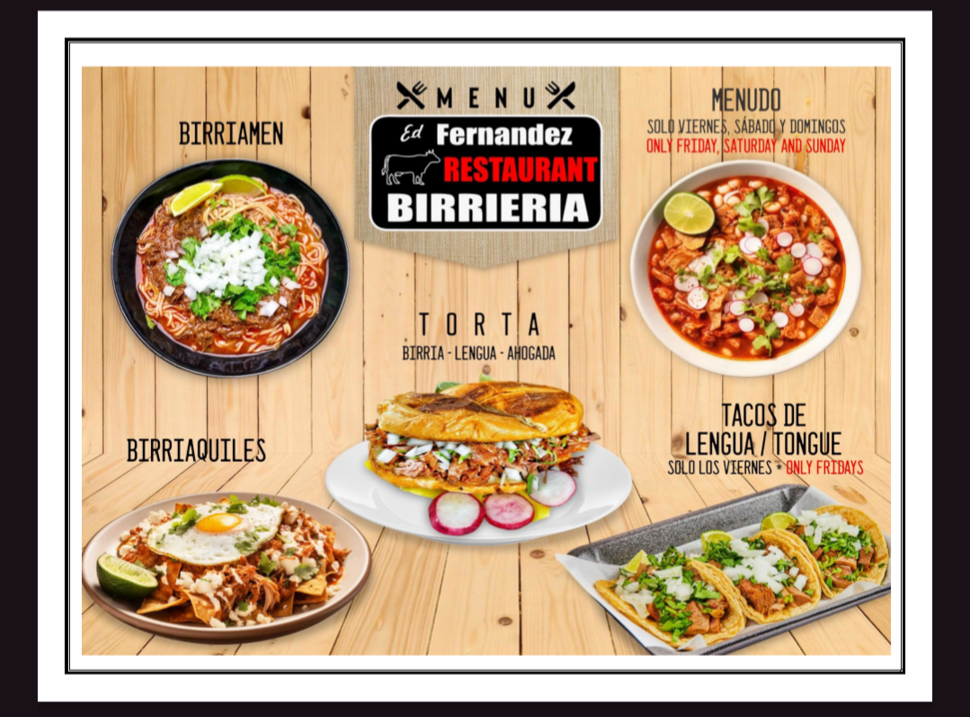 Ed Fernandez Restaurant Birrieria Menu