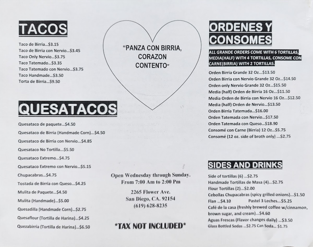 You’ll find a variety of birria tacos and quesadillas made with handmade tortillas, highlighting the care and tradition behind each preparation. Items like the tostada de birria and extremo tacos provide heartier options that pair naturally with classic beverages such as Mexican Coke or a refreshing horchata, making for a balanced and satisfying experience.